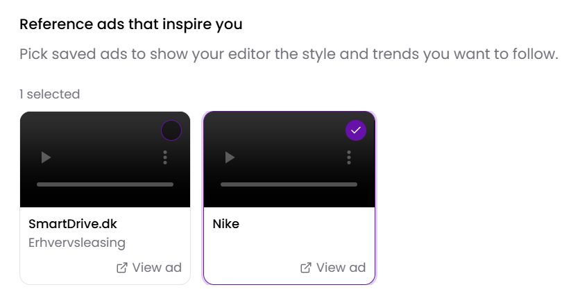 - Tilføje annoncer fra AdSpy (valgfrit), hvis du har fundet eksempler på annoncer, du gerne vil lade dig inspirere af